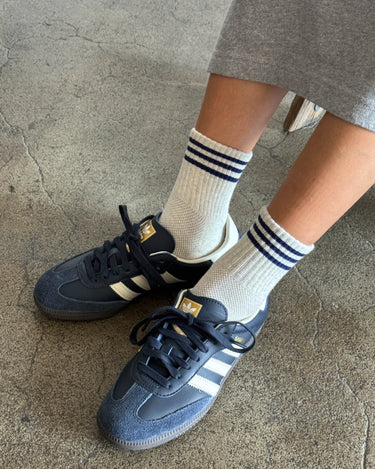 The cool, quarter-crew version of the signature Boyfriend Socks. The Girlfriend Socks feature a contrast triple stripe, mesh along the top of the foot for breathability, and elastic arch support. They're a universally quintessential sock and especially flattering for our petite ladies, great for every day wear.