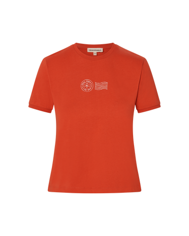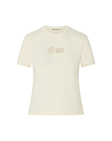 The Maeve tee is the perfect baby tee - stretch cotton with thicker hems to give it more of a retro look. With a Paris postage stamp print, this tee is an homage to Zoe’s home away from home, Paris.